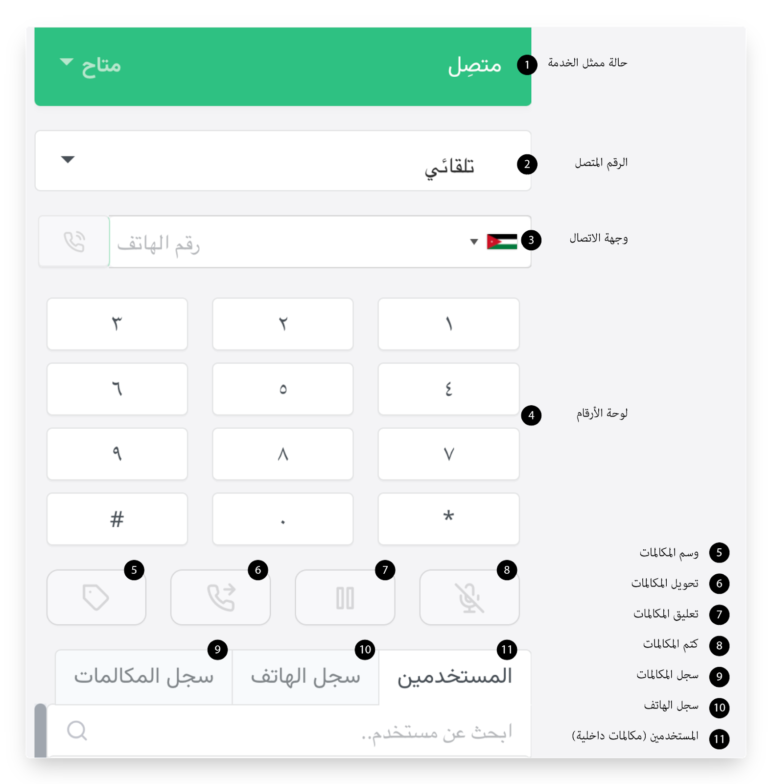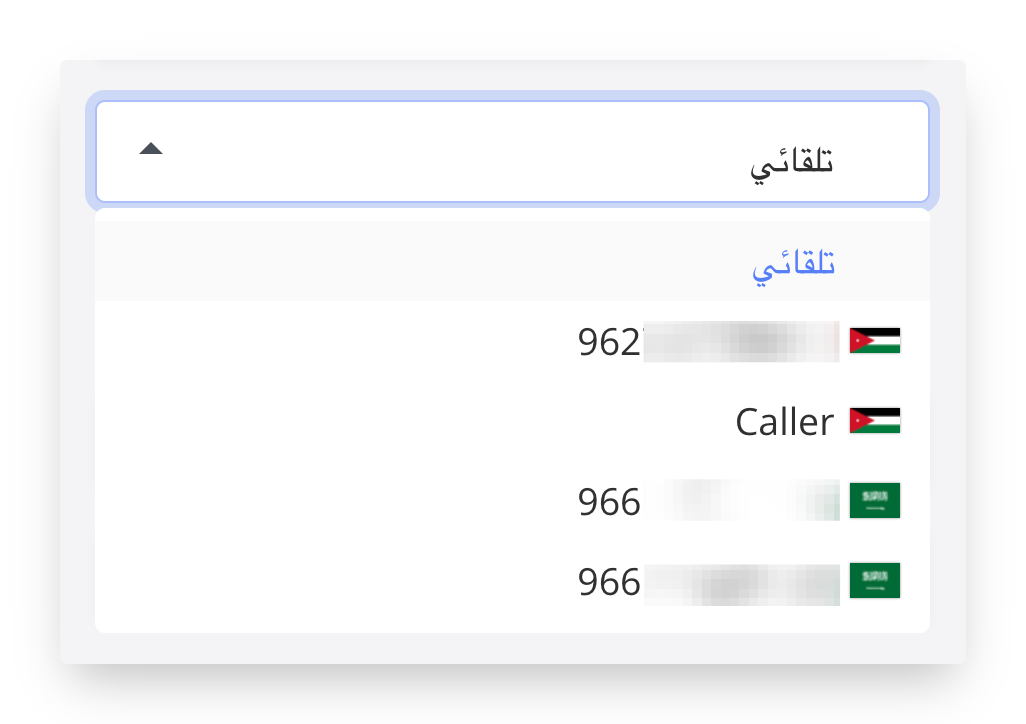 سيتمكن ممثلي الخدمة المصرح لهم من اختيار الرقم الذي يتصلون منه إذا كان للحساب أكثر من رقم مسجل، أو أي رقم يتم تعيينه افتراضيًا من قبل مسؤول الحساب. لتحديد الرقم الذي سيتم الاتصال به في حالة وجود أكثر من رقم هاتف مسجل، يمكن لممثلي الخدمة اختيار أي رقم من الأرقام المسجلة وفقًا للمجموعات المعينة لهم.