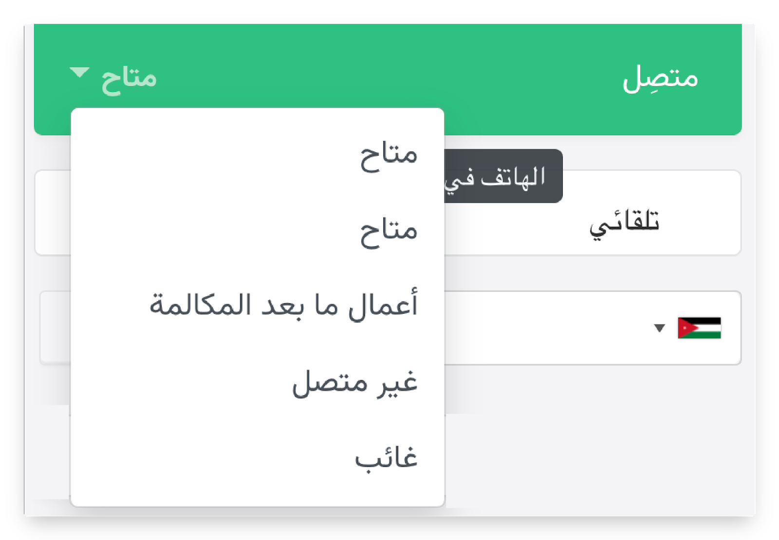 • الخطوة 3: تأكد من حالة الإنترنت هي "متصل"، وأن حالة ممثل الخدمة "متاح" في الهاتف. حيث ستكون الآن جاهزًا لاستقبال المكالمات.