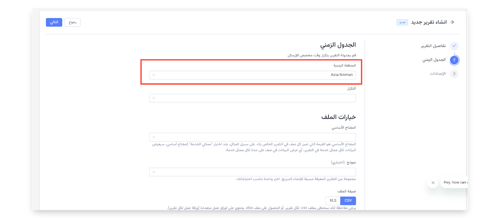 باتباع هذه الخطوات، ستحصل على تحكم كامل في تكرار التقرير، المنطقة الزمنية، والفترة الزمنية المغطاة في التقارير المجدولة.