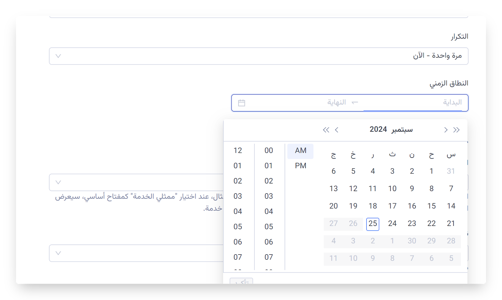 بعد اختيار هذا التكرار، ستظهر لك خيارات لتحديد الوقت المناسب لك.