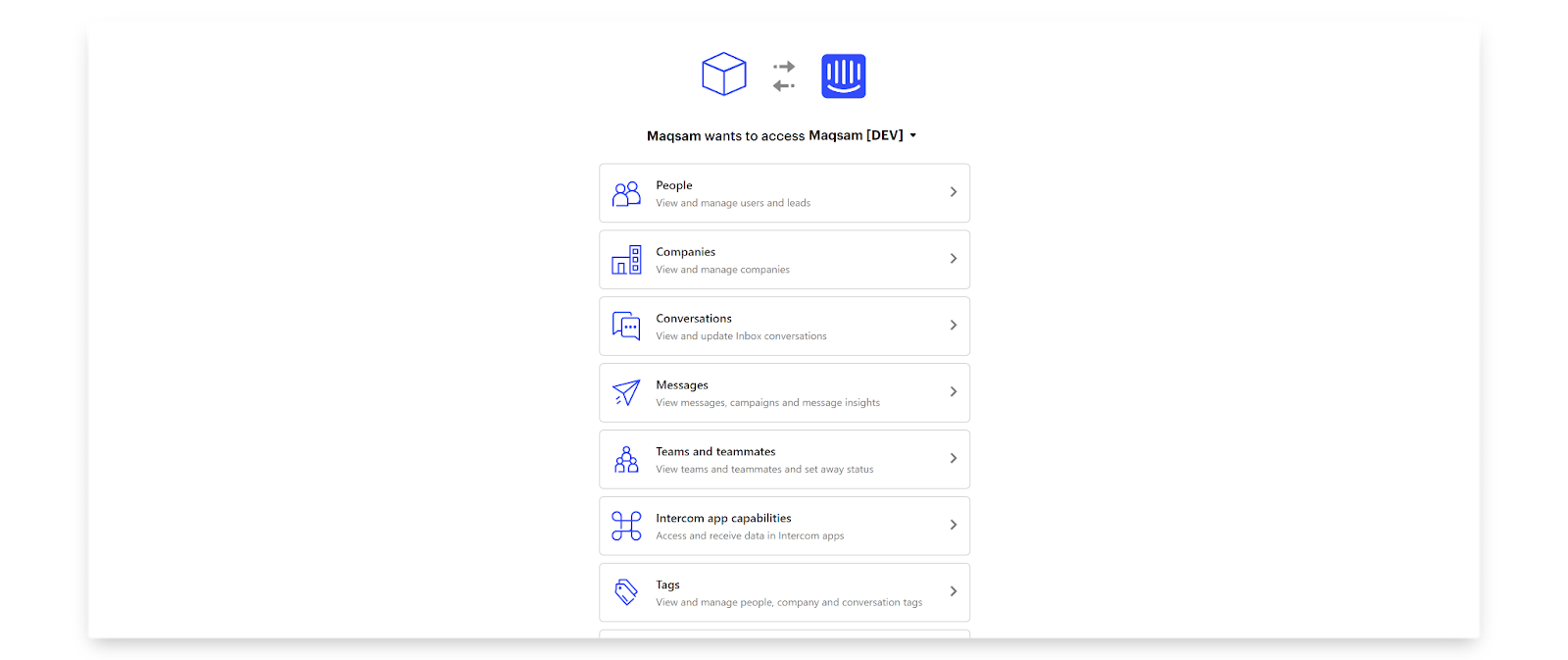 - Click on ‘Authorize Maqsam’, which will redirect you to Intercom Access List.