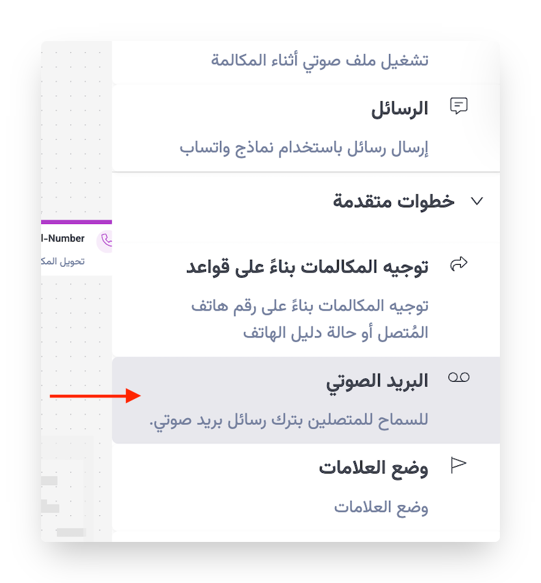 ? نظرة عامة تتيح خطوة تحويل المكالمات توجيه المكالمات الواردة إلى ممثلي الخدمة أو المجموعات أو أرقام هواتف ممثلي الخدمة لمعالجة استفسارات المتصلين بكفاءة عالية. ? تحويل المكالمات إلى ممثلي الخدمة أو المجموعات ⚙️ الإعدادات المحاولات: يحدد عدد ...