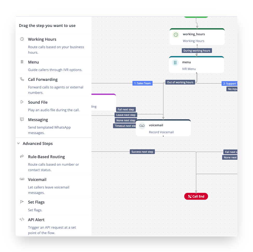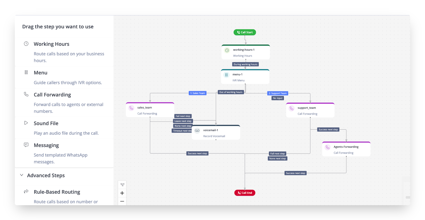 🔁 Automate routing based on caller inputs, business hours, or other criteria.