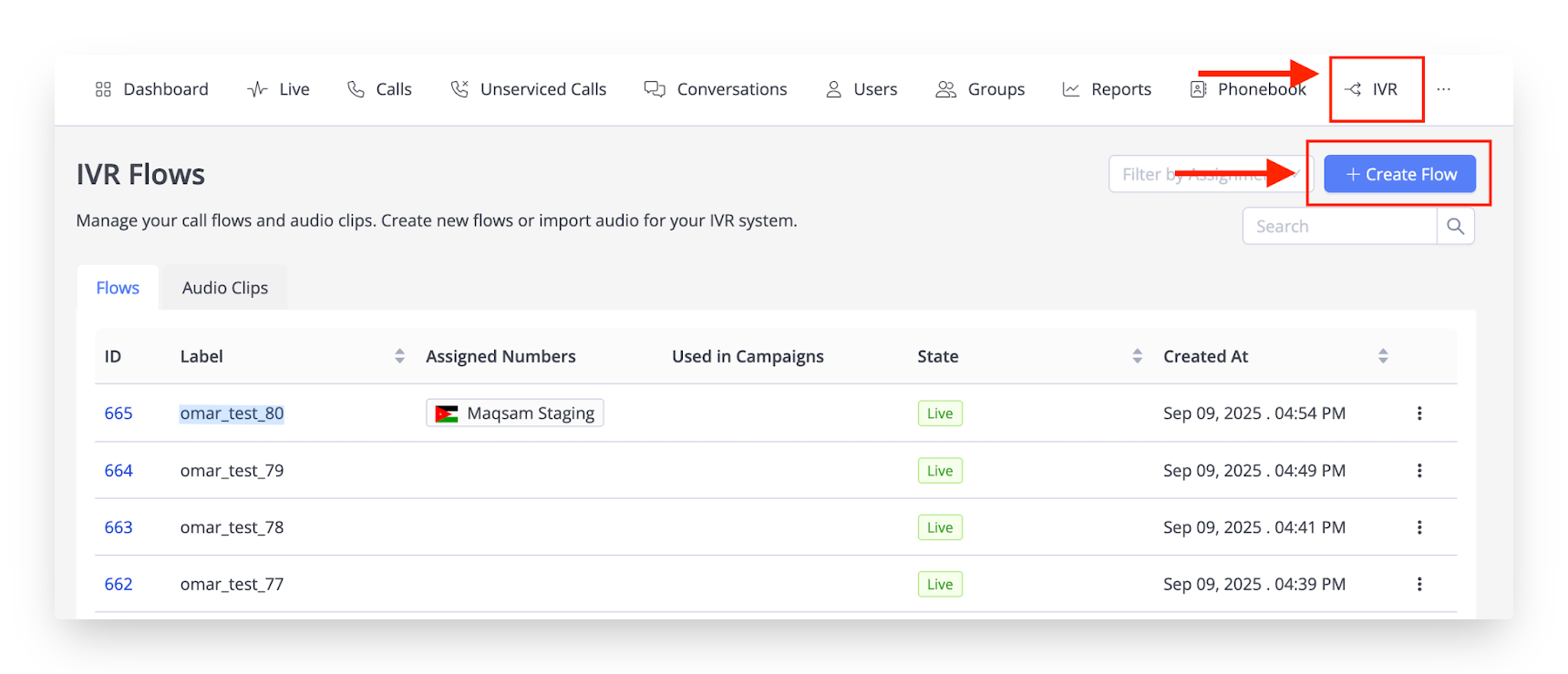 Step 2: Navigate to the IVR page from the Maqsam portal.