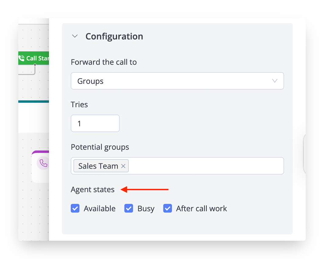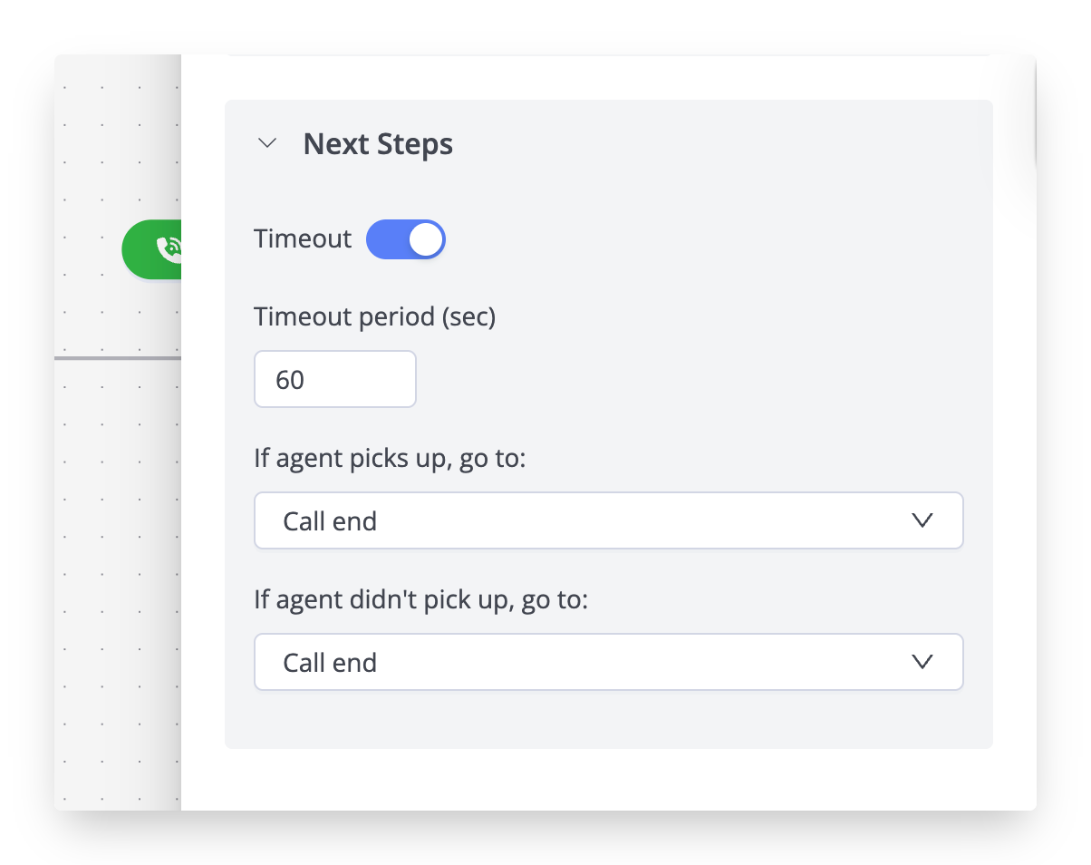 Example: IVR waits 10 seconds before → If the agent didn't pick up, go to: Voicemail.