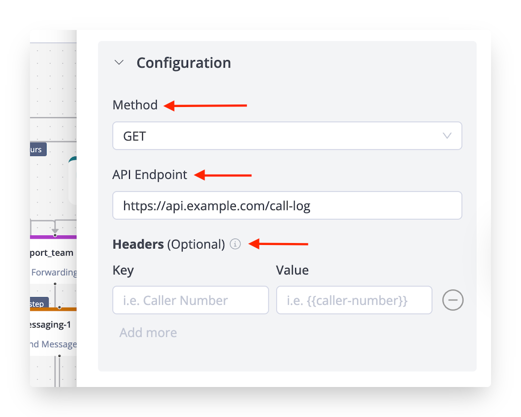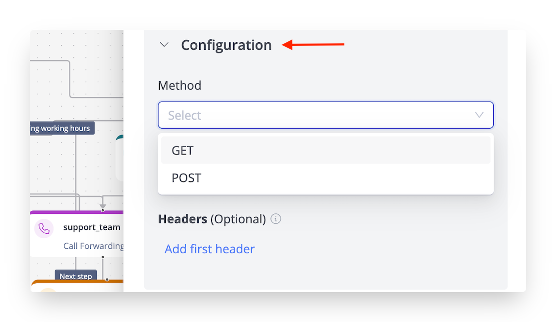 The Webhook Step sends an API request that delivers all call information, such as caller number, agent name, call state, IVR inputs, etc., to an external system.
