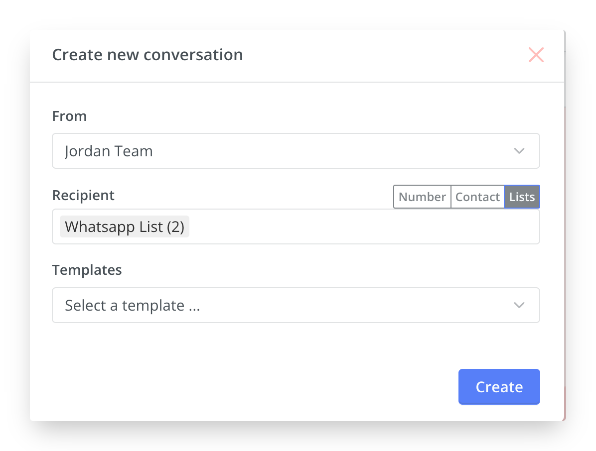 Lists later can be selected from Whatsapp template sending pop up to be sent after selecting the template.